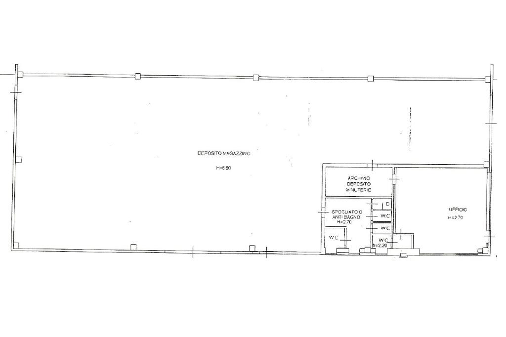 L’immobile dispone di uffici già realizzati e di 5 servizi igienici, oltre a spogliatoi per il personale. Non è presente impianto di riscaldamento né impianto di aria condizionata.