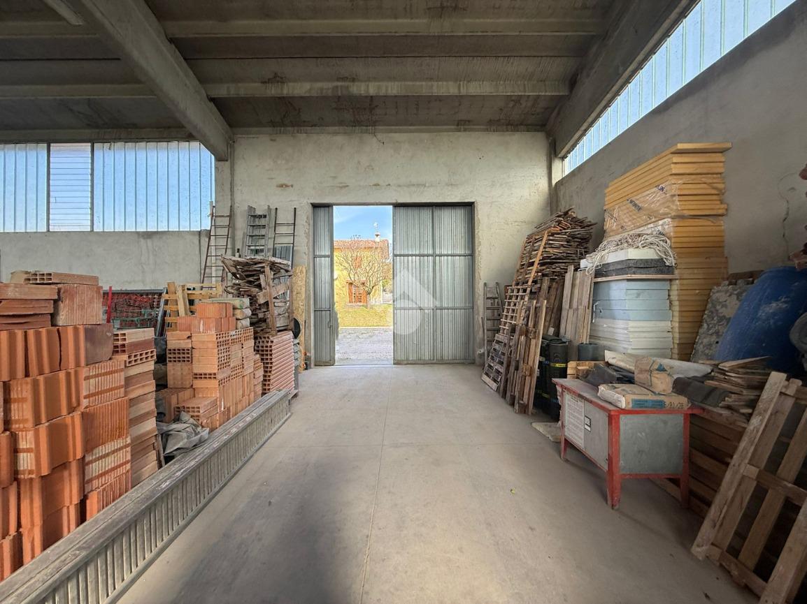 Il capannone ad uso magazzino vanta una superficie di 520 metri quadrati sviluppati open space senza ingombri e con un'altezza di 7,40 metri. Il fabbricato artigianale è dotato di vetrate alte laterali che garantiscono una buona luminosità naturale e due grandi portoni di accesso. L'area esterna antistante consente ampie manovre a a mezzi pesanti. Adiacente al capannone troviamo due magazzini di circa 75 metri quadrati ciascuno, perfetti come depositi aggiuntivi o ricovero attrezzi.