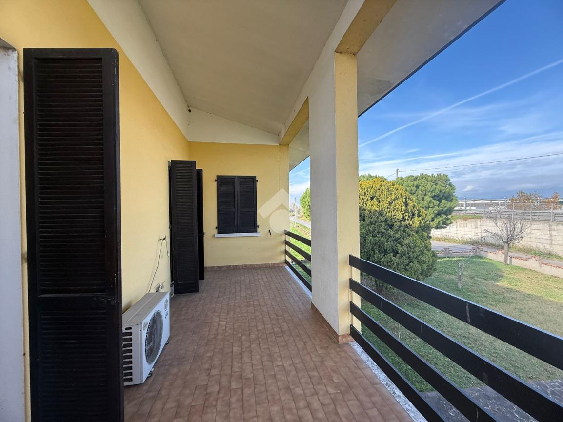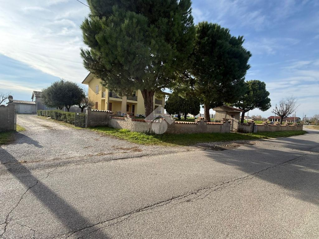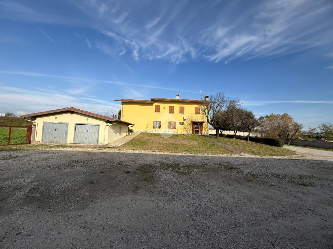 L'abitazione di circa 300 metri quadrati si presenta in ottime condizioni con facciata curata e un ampio giardino. Si sviluppa su tre livelli ed è composta da due appartamenti quadrilocali indipendenti; ogni appartamento è composto da sala con cucina, corridoio che porta nella zona notte con tre camere da letto e bagno. L'appartamento posto al primo piano gode di un ampio balcone che si affaccia sul giardino frontale, mentre l'appartamento del piano terra vanta un piccolo atrio d'ingresso. Al piano seminterrato troviamo una cantina spaziosa. Esternamente, adiacente all'abitazione si trovano due garage singoli, facilmente accessibili e dotati di basculante metallica.