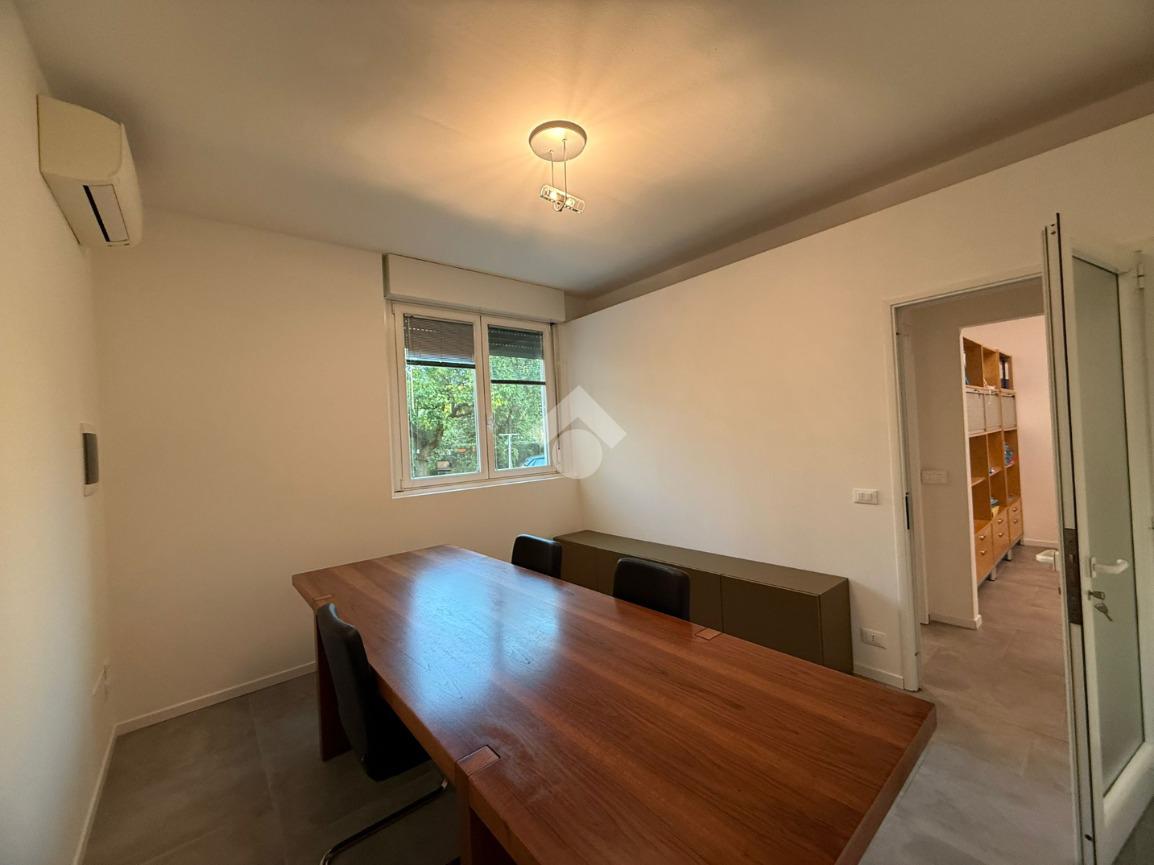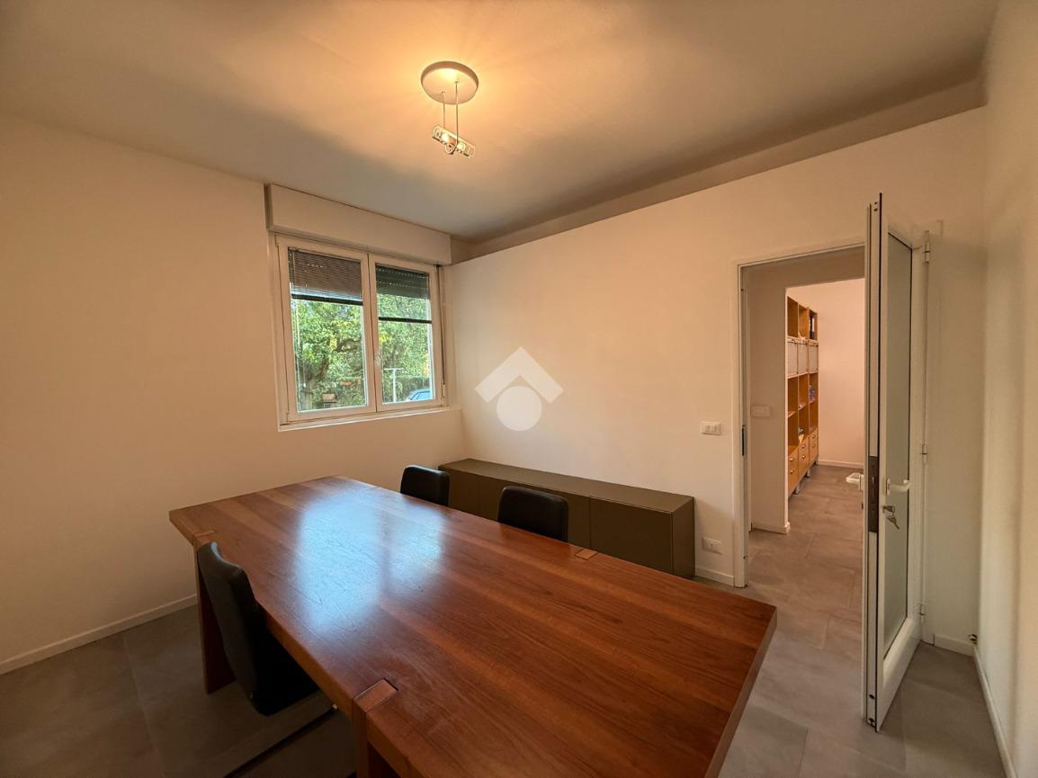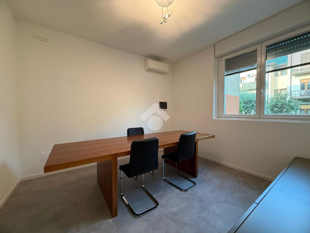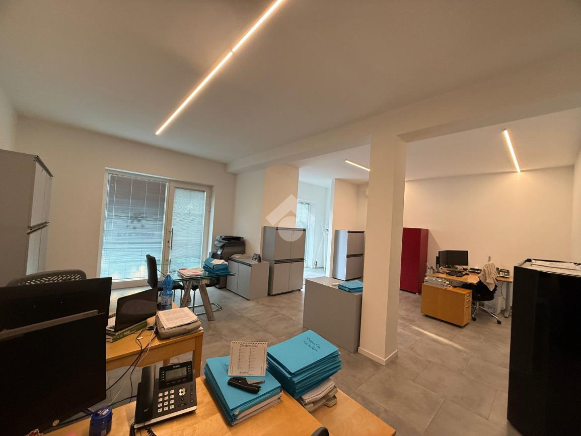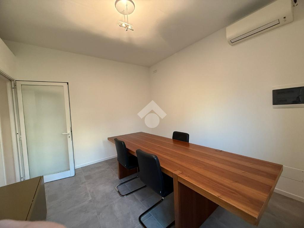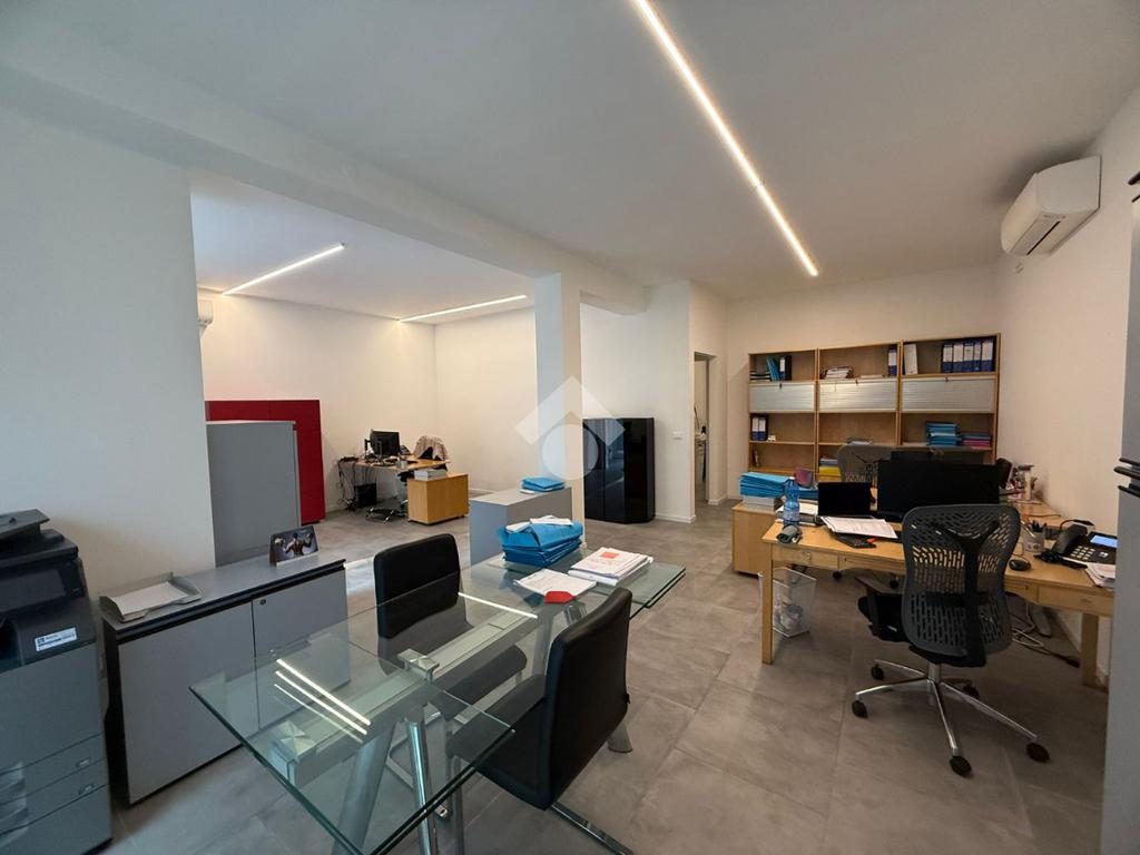 Posto al piano terra di un edificio residenziale, con ingresso indipendente ed esente da spese condominiali, l'immobile si presenta in ottime condizioni con finiture moderne, ideale per studi professionali, attività di consulenza, coworking e uffici di rappresentanza commerciale. Internamente, l’immobile si distingue per la sua organizzazione funzionale e gli ambienti curati nei dettagli. All’ingresso troviamo un ampio open space, valorizzato da due grandi porte-finestre frontali che donano abbondante luce naturale e consentono l’accesso diretto all’esterno, successivamente vi è una sala riunioni e un ripostiglio/archivio. Il bagno finestrato, dotato di sanitari moderni, completa la disposizione interna. La superficie complessiva è di circa 93 metri quadrati, rifinita con pavimenti in gres porcellanato effetto pietra, illuminazione LED a incasso, impianto di climatizzazione caldo/freddo autonomo e infissi con doppi vetri e serramenti di sicurezza. L’ingresso indipendente e l’assenza di barriere architettoniche garantiscono massima comodità e accessibilità. All’esterno, un piazzale privato pavimentato offre 3 posti auto riservati proprio davanti all’ingresso, mentre la facciata moderna e ben visibile dalla strada, arricchita da ampie vetrate personalizzabili con il logo aziendale, assicura un’eccellente visibilità e rappresentanza.